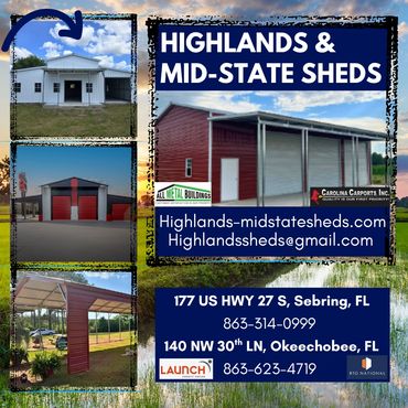 At Highlands &Mid-State Sheds, we strive to provide the highest quality customer service. We use top quality builders for our sheds, carports, metal buildings, gazebos, dog kennels, picnic houses and more. Our mission is to enhance your outdoor spaces with durable and stylish storage solutions.